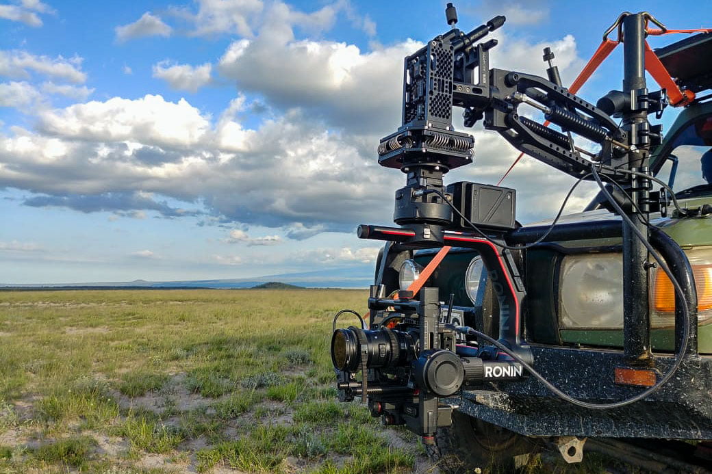 I was using a DJI Ronin 2 gimbal car rig on one of my last shoots in Amboseli National Park as a wildlife cameraman. This setup was used in combination with my zCam and my 18-35mm and 70-200mm lenses.